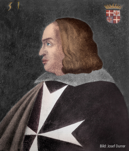 Portrait eines Ordensmeisters, Mart / Martin ... und Johanniter-Grossmeister (evtl. Pierre d'Aubusson, 1423 - 1503 von Frankreich), Ölbilder von Hohenrain.